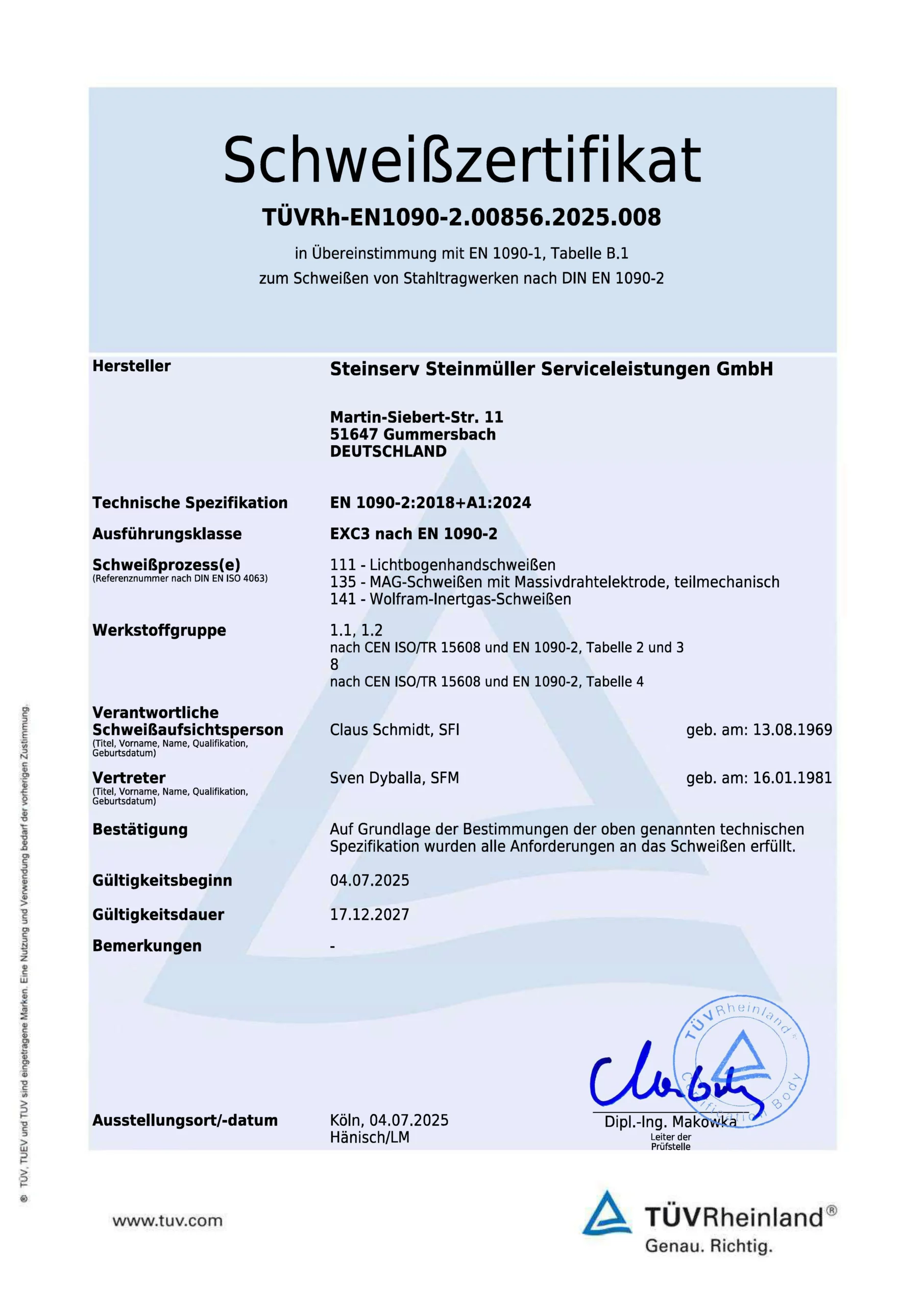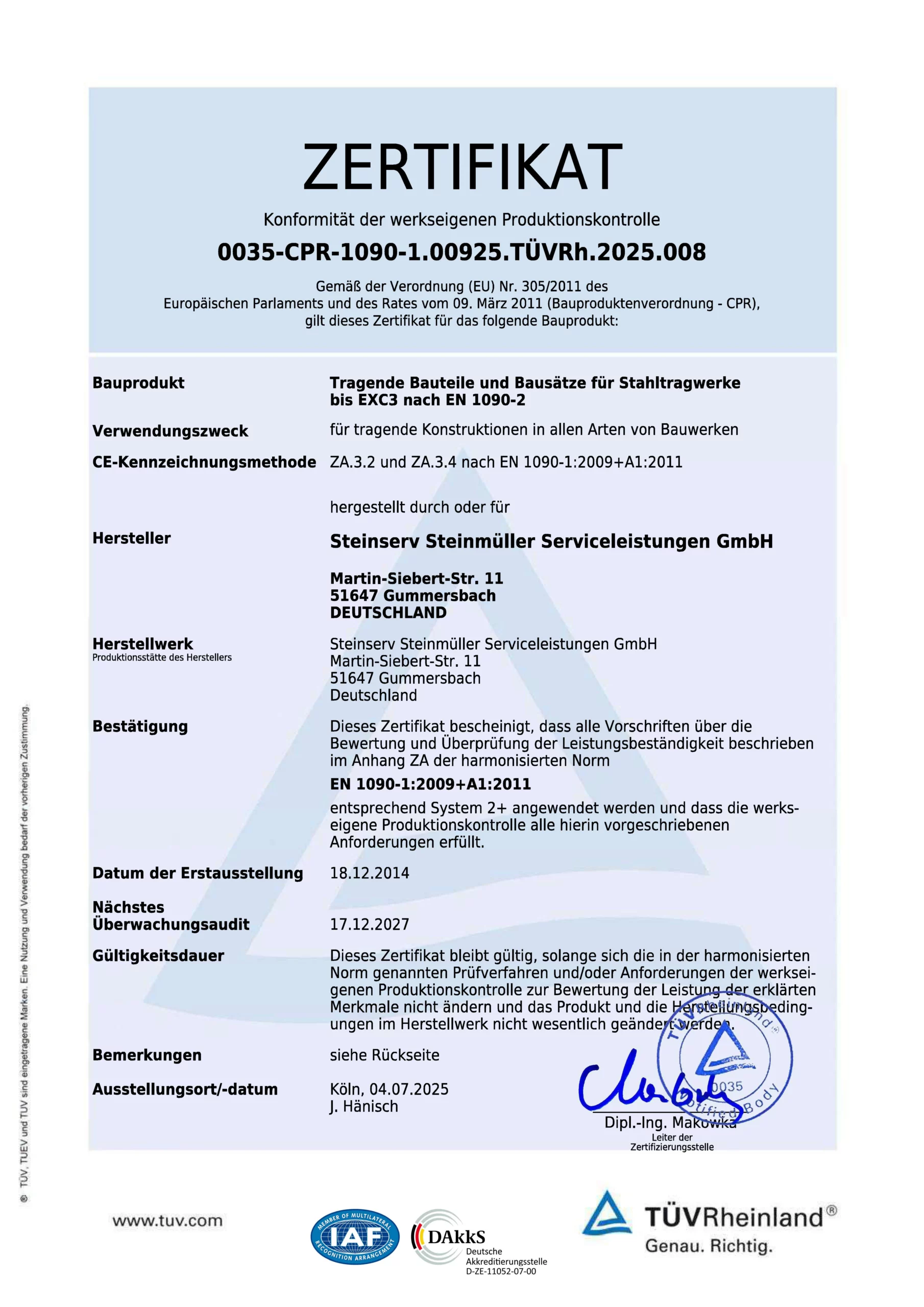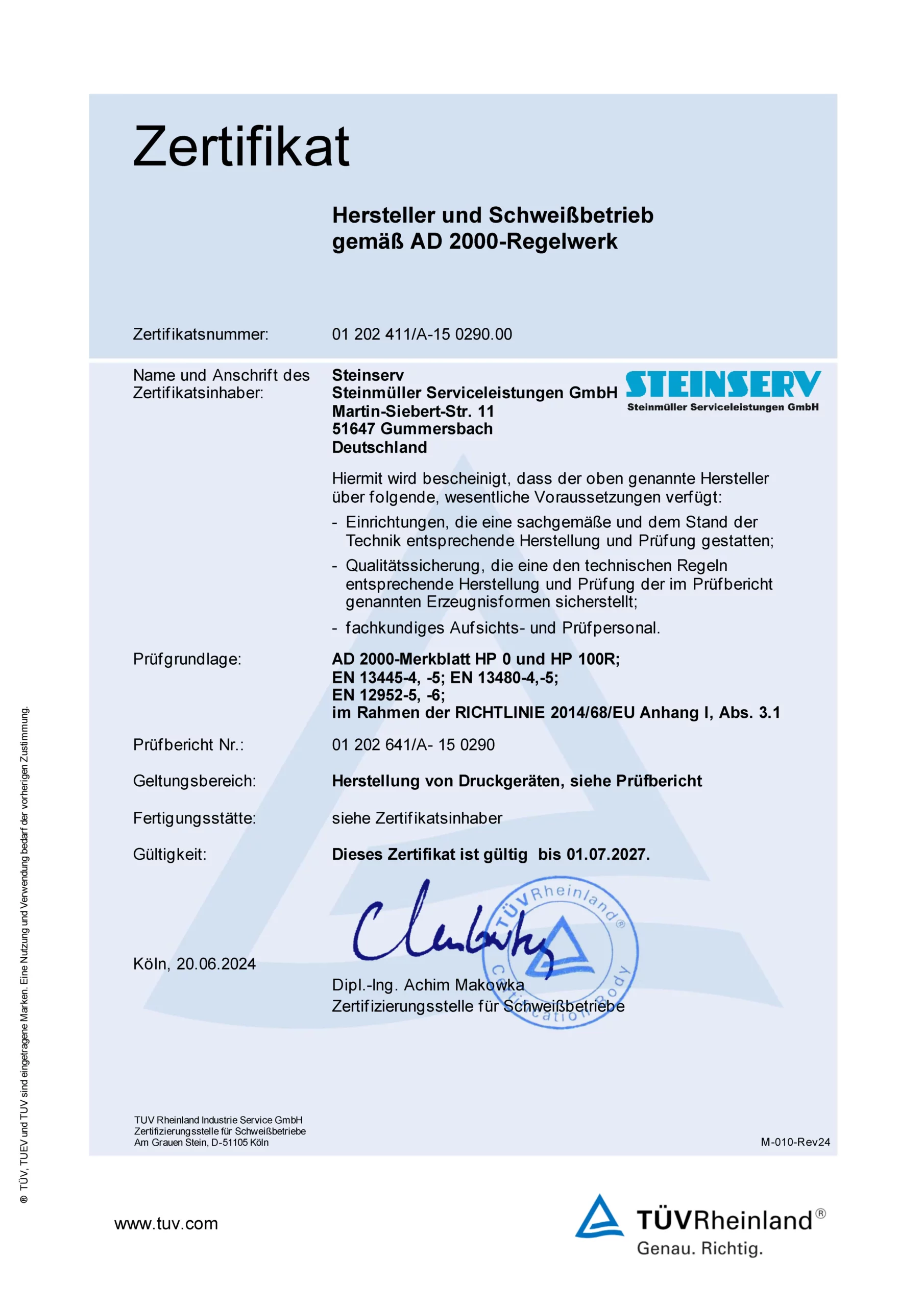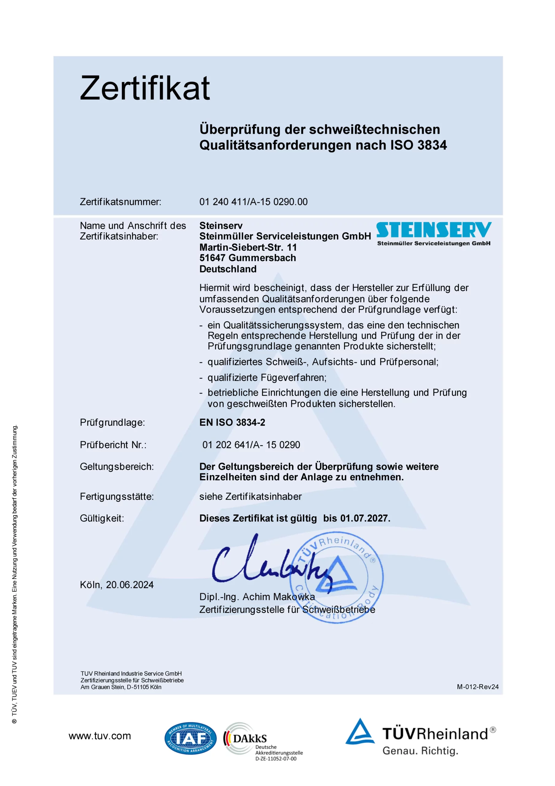 Besonderen Wert legen wir auf die regelmäßige und aktuelle Zertifizierung durch international anerkannte Prüfungsorganisationen wie den TÜV Rheinland. Die zur Zeit aktuellen Zertifizierungen finden Sie hier: